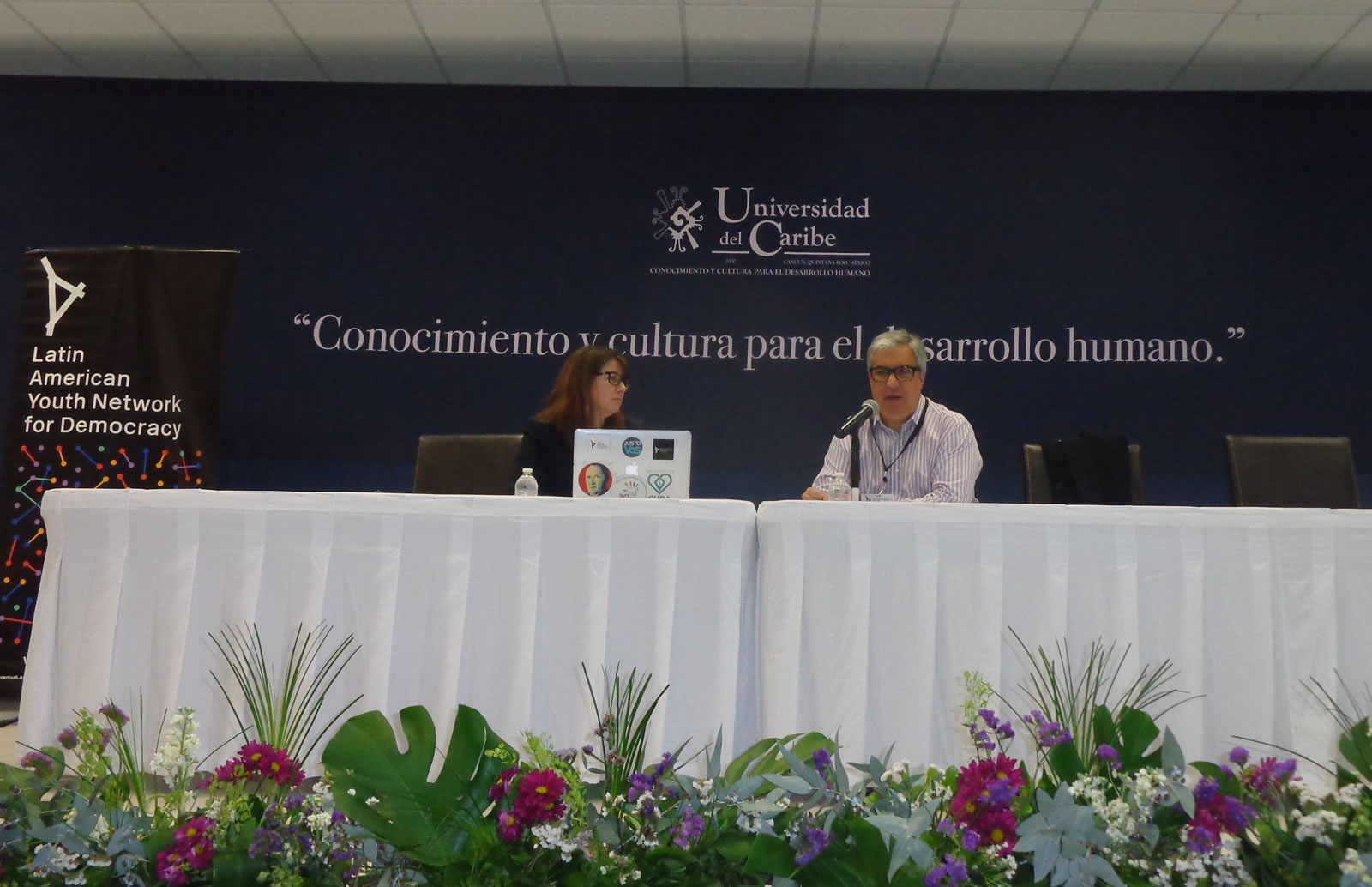 Gabriel Salvia, alongside Micaela Hierro, in a panel on “Human Rights in Latin America.” The panel took place in parallel with the OAS General Assembly at the Universidad del Caribe and was organized by the Latin American Youth for Democracy Network.